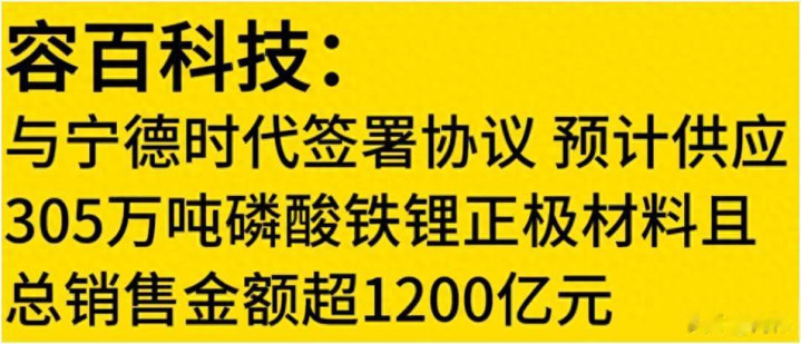 容百科技和宁德时代签署了协议,预计供应305万吨磷酸铁锂正极材料,总销售金额超过1200亿元。这一合作在新能源材料领域是个不小的动作,也体现了行业内的资源整合和需求匹配。