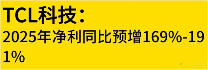 TCL科技2025年净利同比预增169%-191%,显示出公司在行业中的竞争力和经营效率的提升。